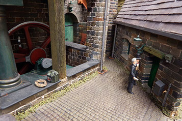 A closer view of the beam engine. Perhaps the works manager is looking around.