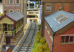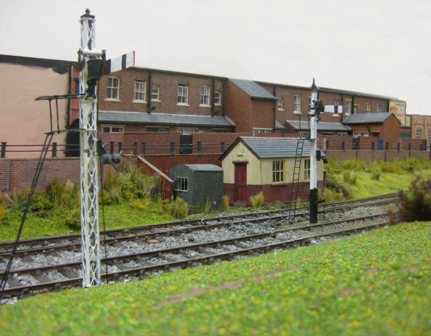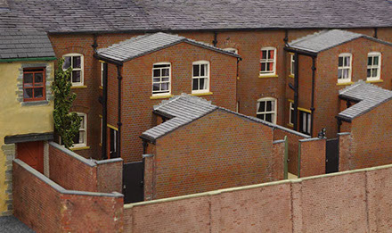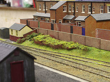 A close-up of the house-backs that provide a backdrop to the tracks.